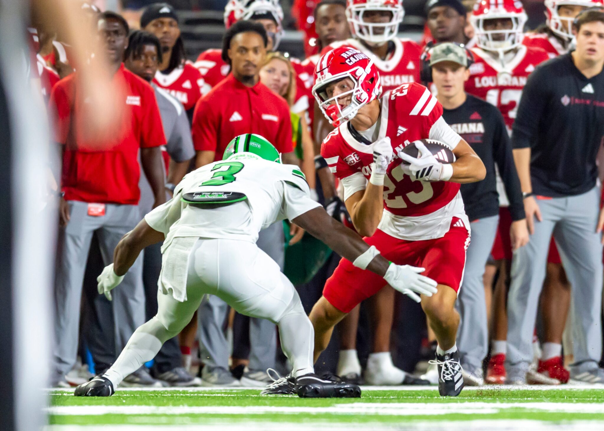 That’s how it went down Saturday night when Louisiana, trailing 34-17 midway through the third period, had quarterback Lunch Winfield enter the game, account for four of his five touchdowns with the capper a 10-yard run in the second OT when he leaped over a Marshall defender into the end zone to secure a 54-51 victory.