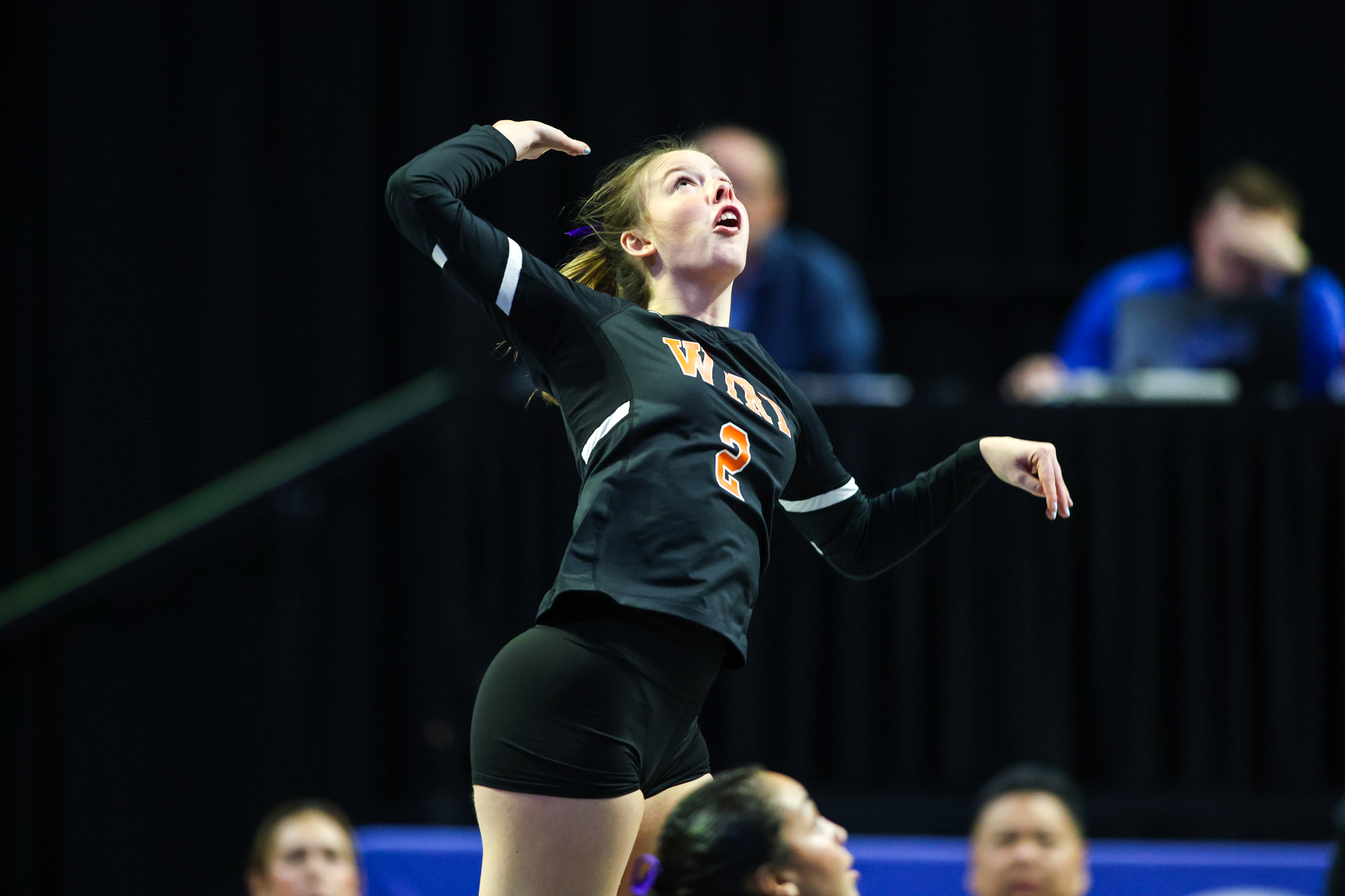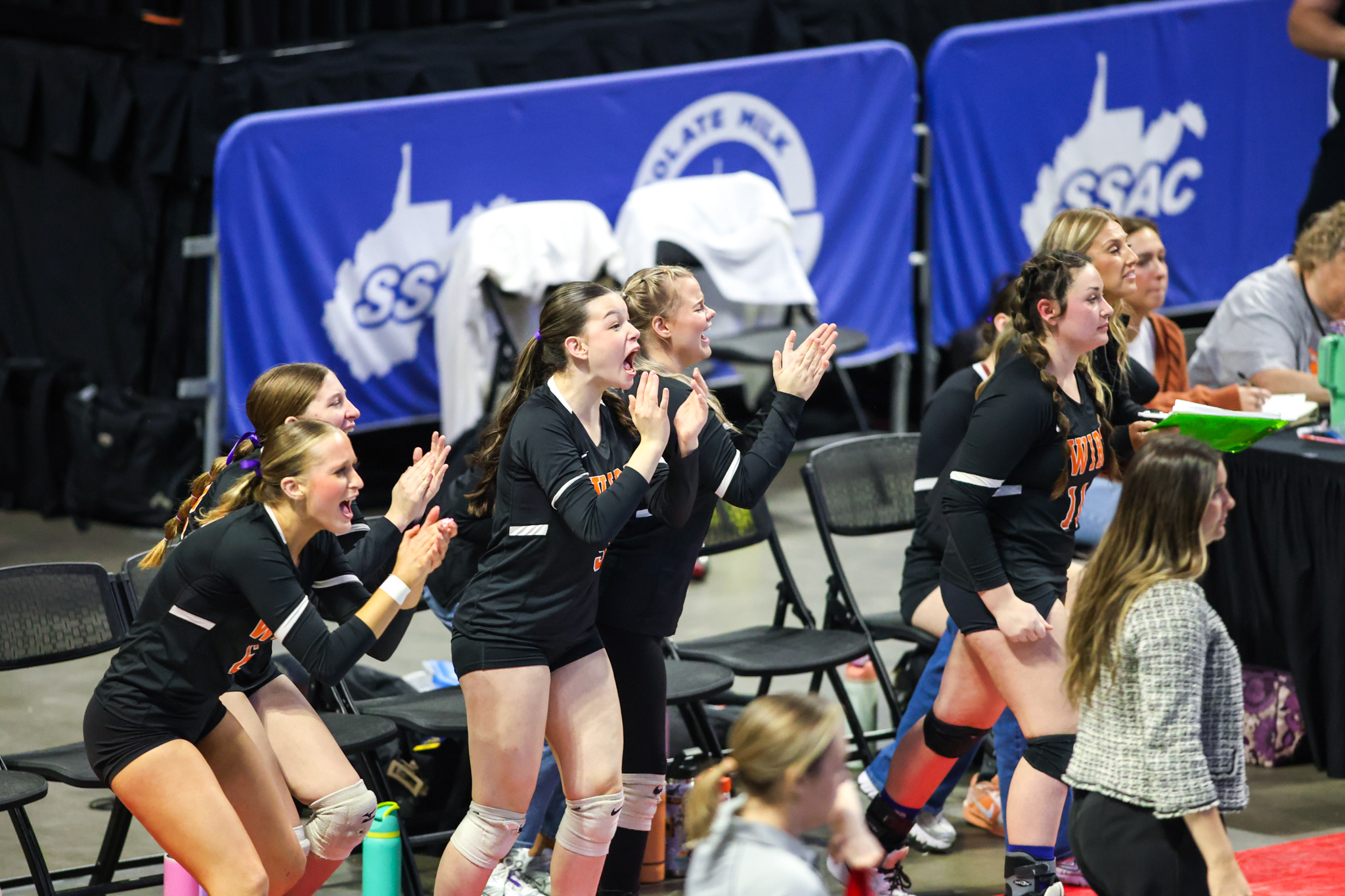 The next point proved to be as important as any in the contest. Wirt and Gilmer battled back-and-forth for nearly 2 minutes, with each side continuously digging to keep hope alive for the point on multiple instances, before the Tigers scored it to gain a six-point advantage. The lengthy volley that went Wirt’s way seemed to demoralize Gilmer and the Tigers went on to win the third and fourth sets in convincing fashion to earn their 14th state championship with a 25-19, 23-25, 25-12, 25-10 victory at the Charleston Coliseum.
