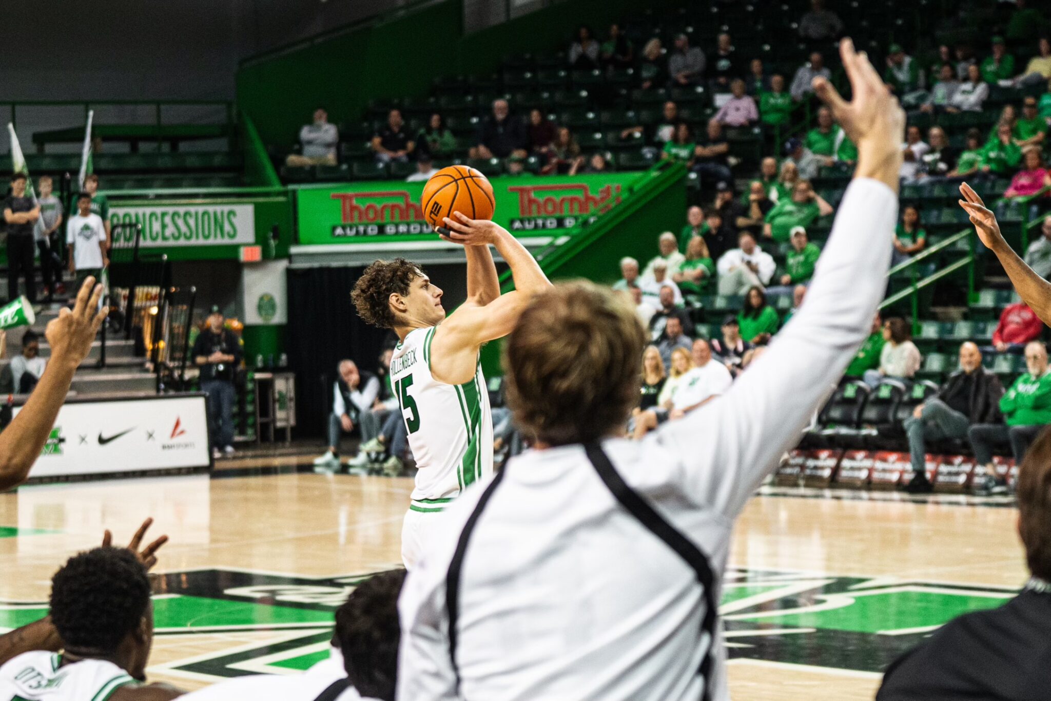 Matt Van Komen, the Herd’s 7-foot-4 center, pulled down a team-high 13 rebounds and contributed nine points to just miss a double-double. Caleb Hollenbeck added 12 points thanks to four threes.