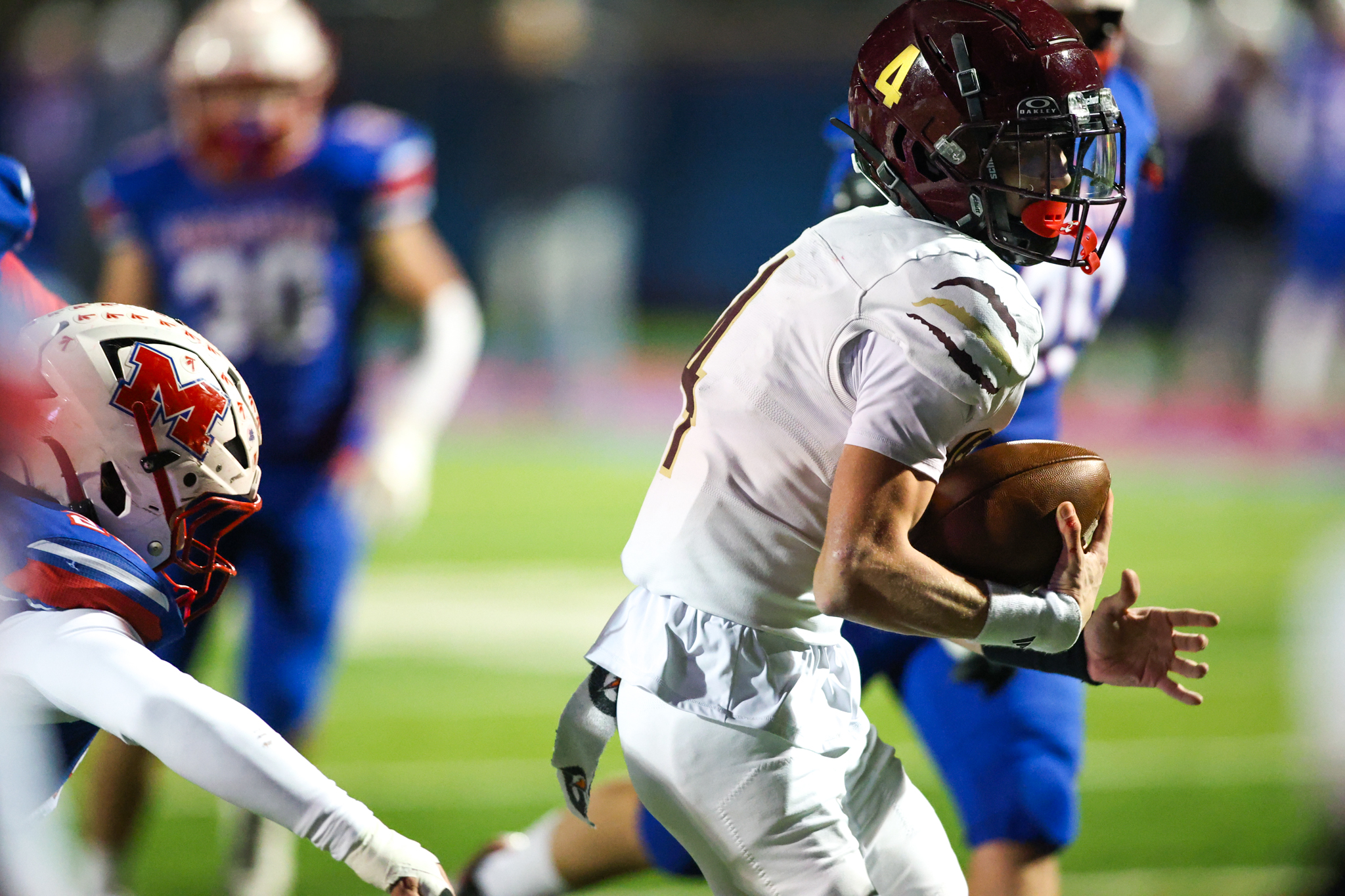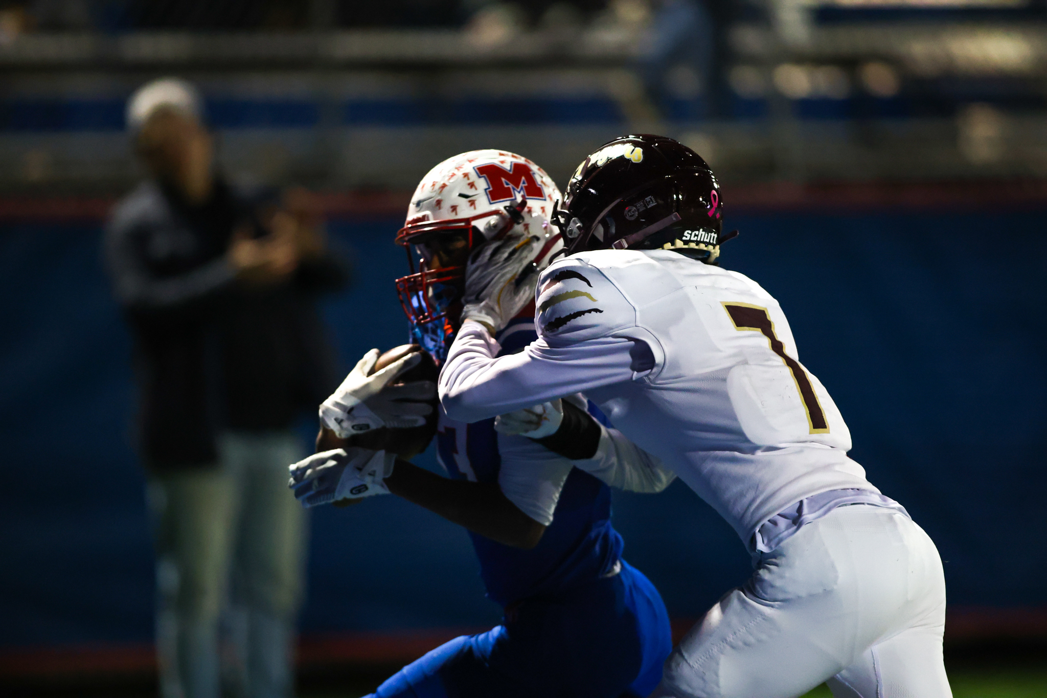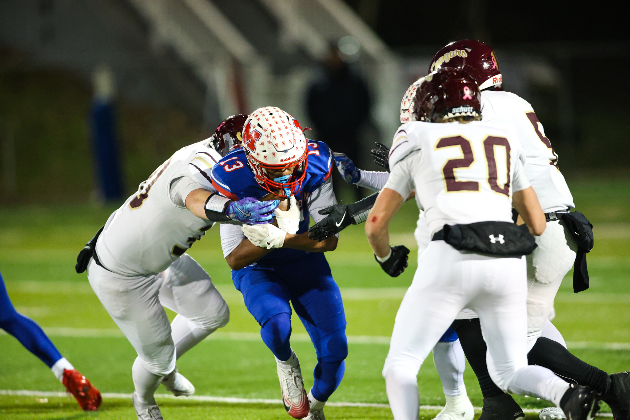 Although the Cougars benefited from a special teams fumble recovery after punting on their first possession, the visitors couldn’t capitalize on stellar field position at the MHS 38-yard line, and Jackson Rockwell’s fourth-and-6 completion to Takiem Drake went for only half of the necessary distance to maintain possession.