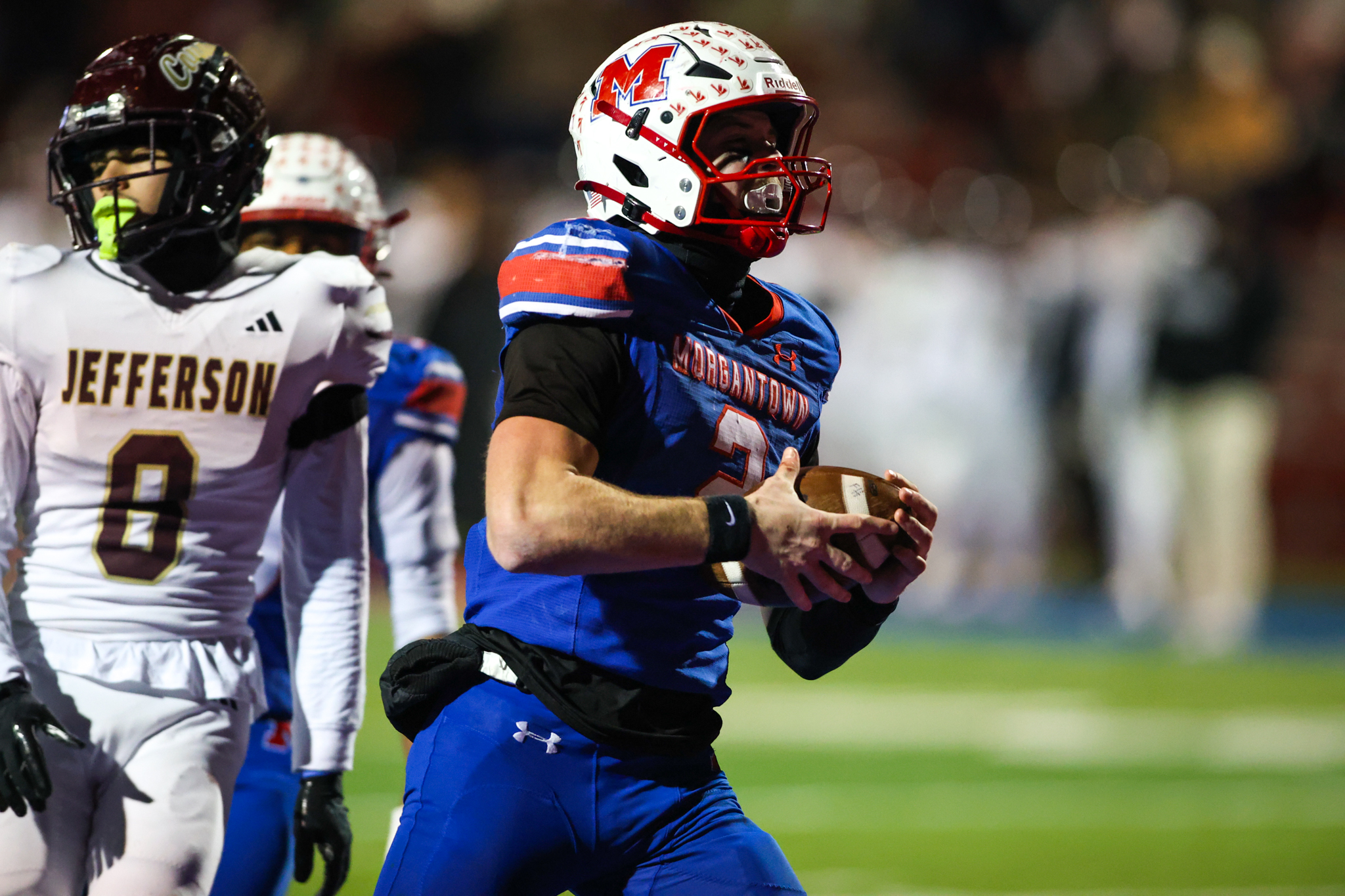 MORGANTOWN, W.Va. — One week after Morgantown handled an abundance of adversity in a one-point double overtime win against Spring Mills, the No. 1 Mohigans were again faced with their fair share Saturday night in a Class AAAA semifinal against No. 4 Jefferson at Pony Lewis Field.