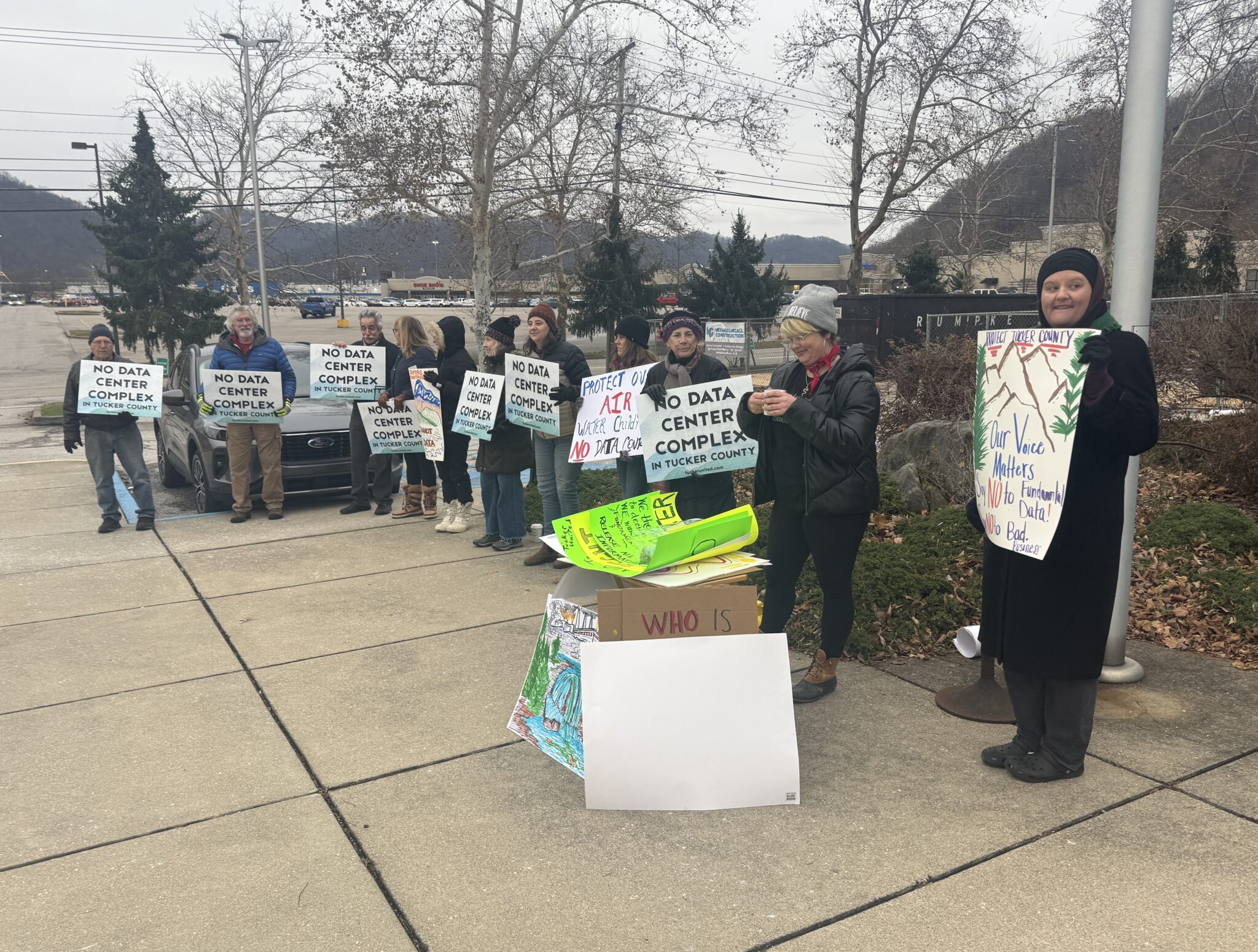 Tucker United, the West Virginia Highlands Conservancy, and the Sierra Club organized the Wednesday morning protests around a hearing before the West Virginia Air Quality Board for the groups’ appeal of an air quality permit issued to Fundamental Data for its Ridgeline facility in Tucker County.