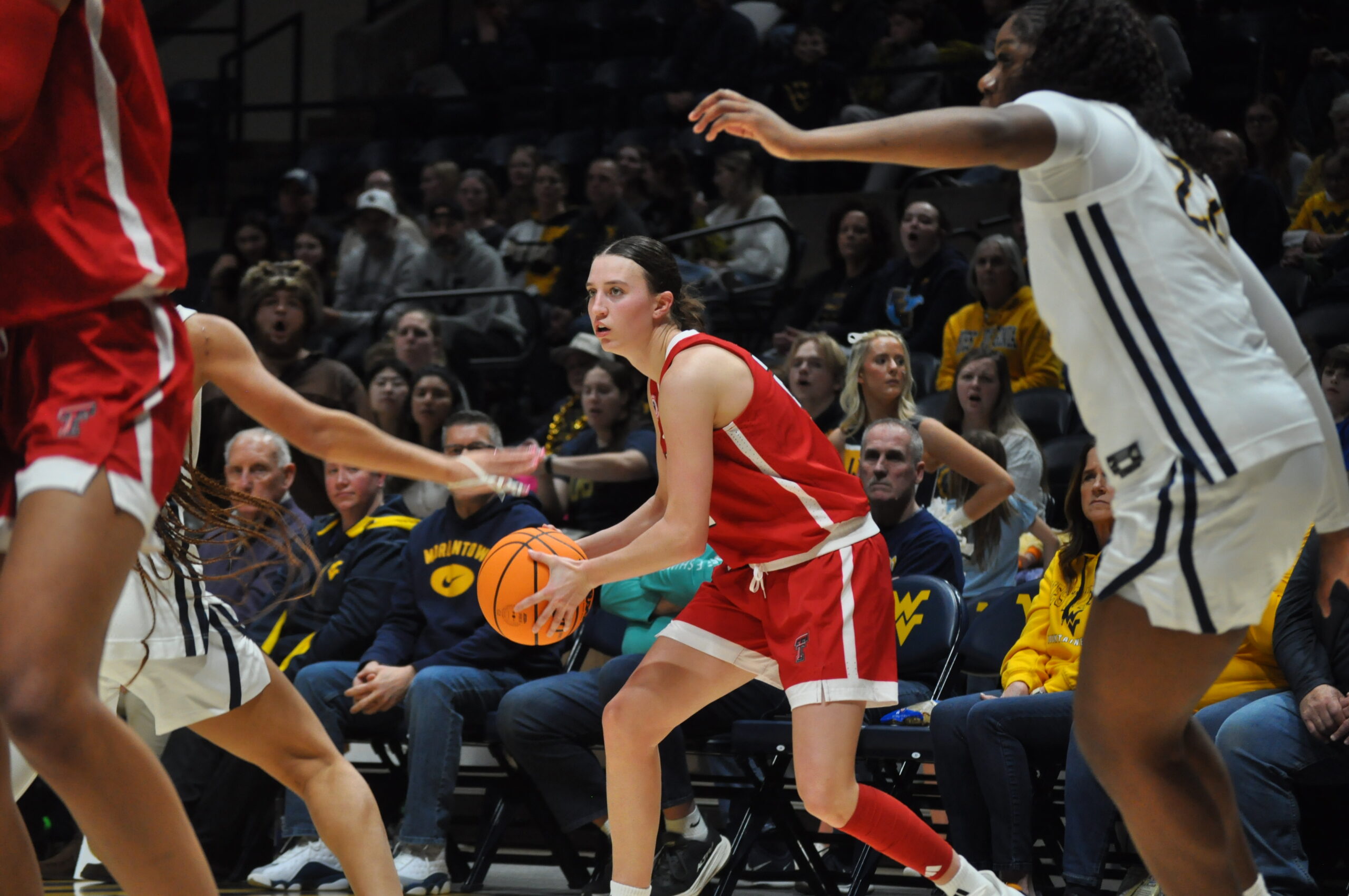 Of WVU’s three fourth-quarter buckets, only one within the first 9:34 — a layup from Kierra ‘MeMe’ Wheeler with 7:10 remaining that left the home team with a 58-53 lead and came directly after Texas Tech’s Bailey Maupin had made a three-pointer.