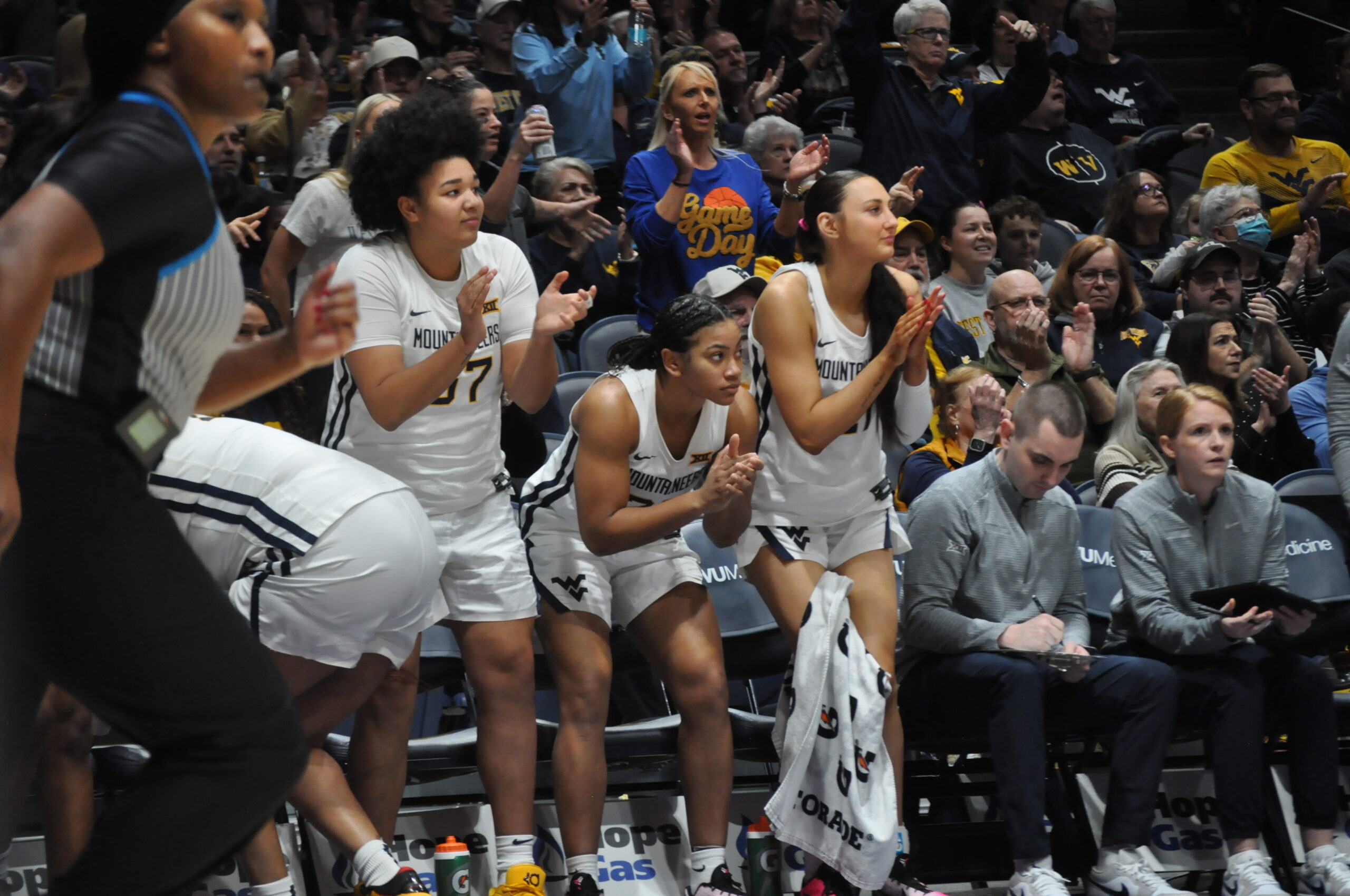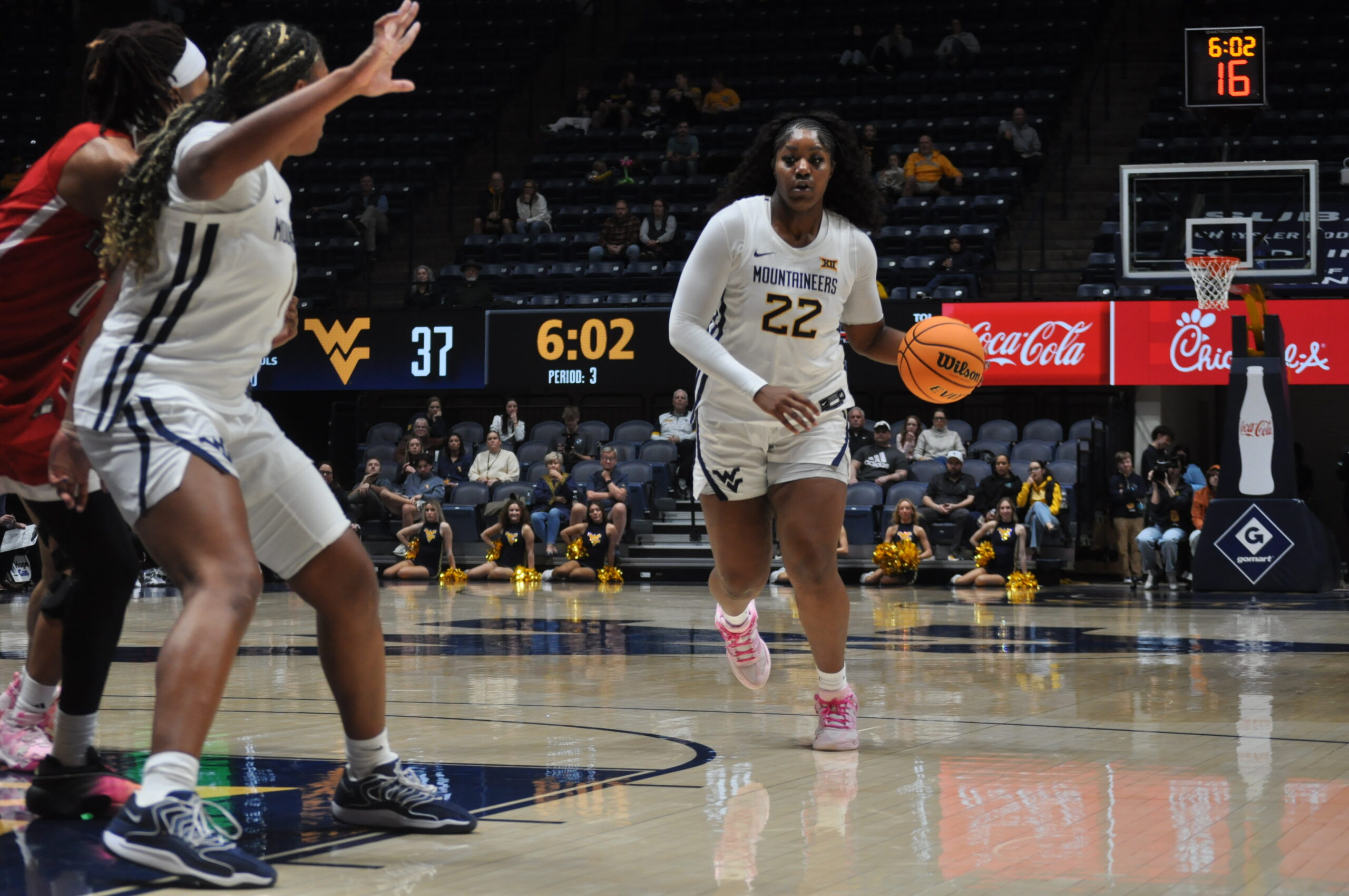 The third period was a far different story as WVU (13-3, 3-1) overcame a 31-28 halftime deficit by making 10-of-13 shots in what amounted to a 25-point frame. Harrison was the catalyst for the success, scoring 11 points on 4-for-4 shooting and dishing out three assists, while McCray continued to be a presence inside and scored seven points on 3-for-3 shooting.