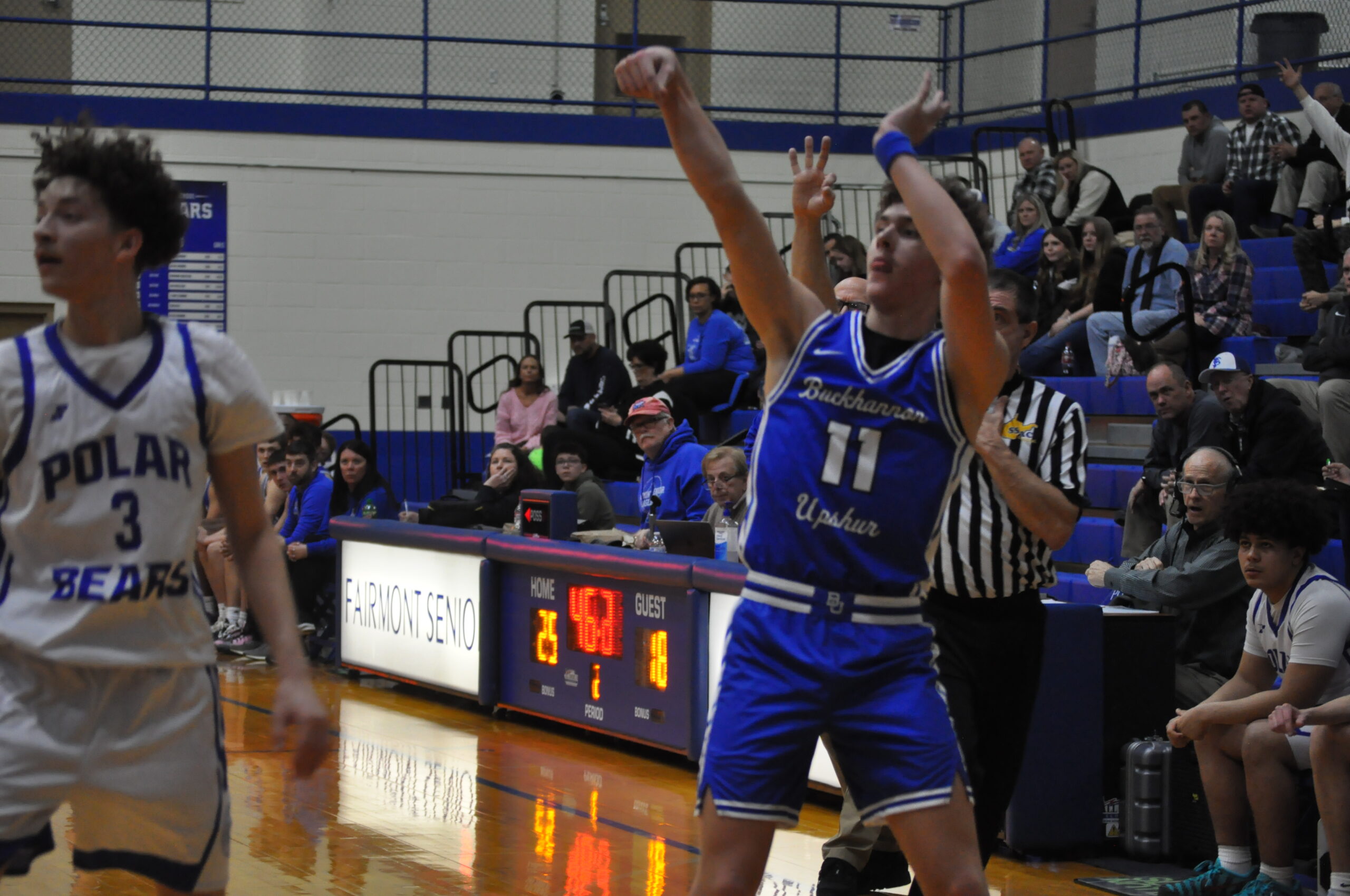 Brody McDaniels with one of his three 3s during a 50-46 win at Fairmont Senior. This trey marked final points of dominant third quarter for Bucs, who outscored Polar Bears 18-1 that frame.#wvprepbb pic.twitter.com/At77v9iqZW