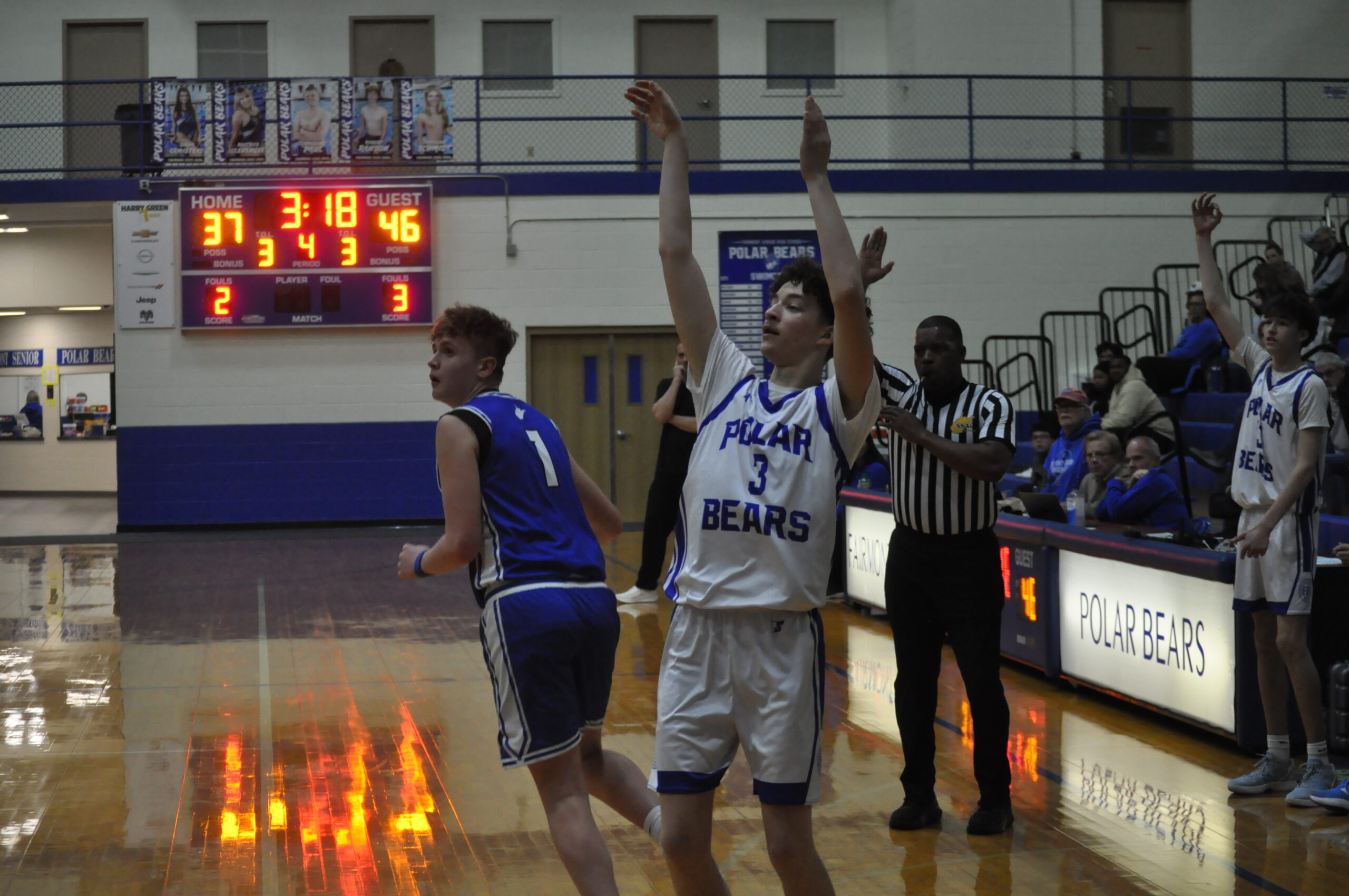 The Polar Bears came charging back immediately after, starting with two free throws from Landon Morris, who sank a corner triple moments later.