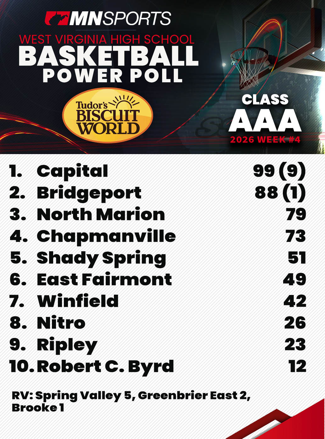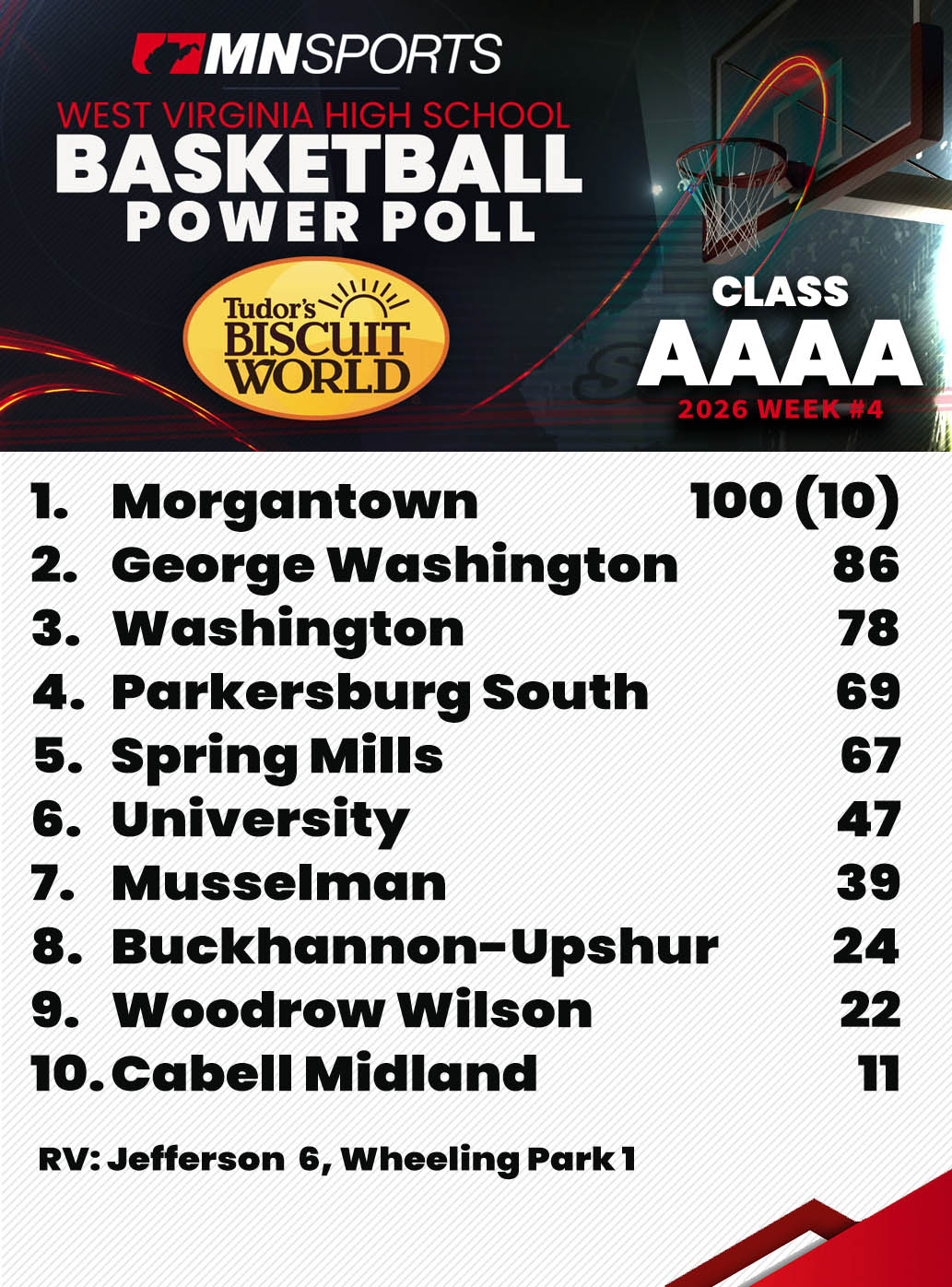 MORGANTOWN, W.Va. — The MetroNews high school boys basketball poll is voted upon weekly by a panel of 10 radio broadcasters and sports writers across West Virginia. The rankings include total points and first-place votes in parenthesis. Week 4 rankings reflect results up through February 4, 2026.